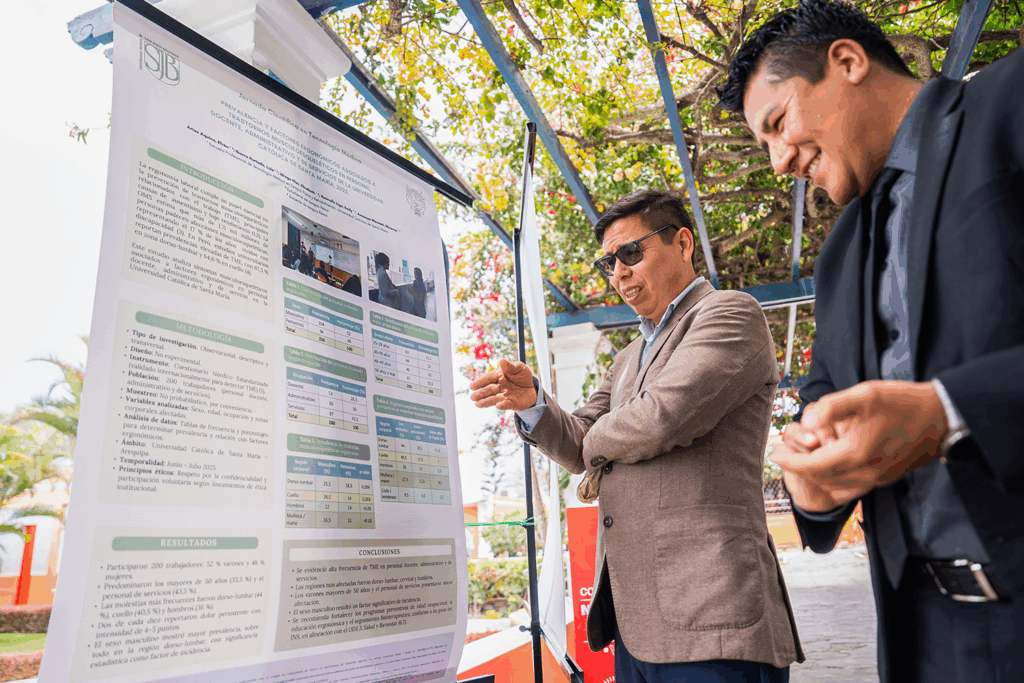 Asimismo, se presentaron investigaciones de universidades peruanas, como la Universidad Católica de Santa María (Arequipa). También se exhibieron trabajos de estudiantes de la UPSJB en Lima, Ica y Chincha, quienes demostraron rigor académico y liderazgo en investigación.