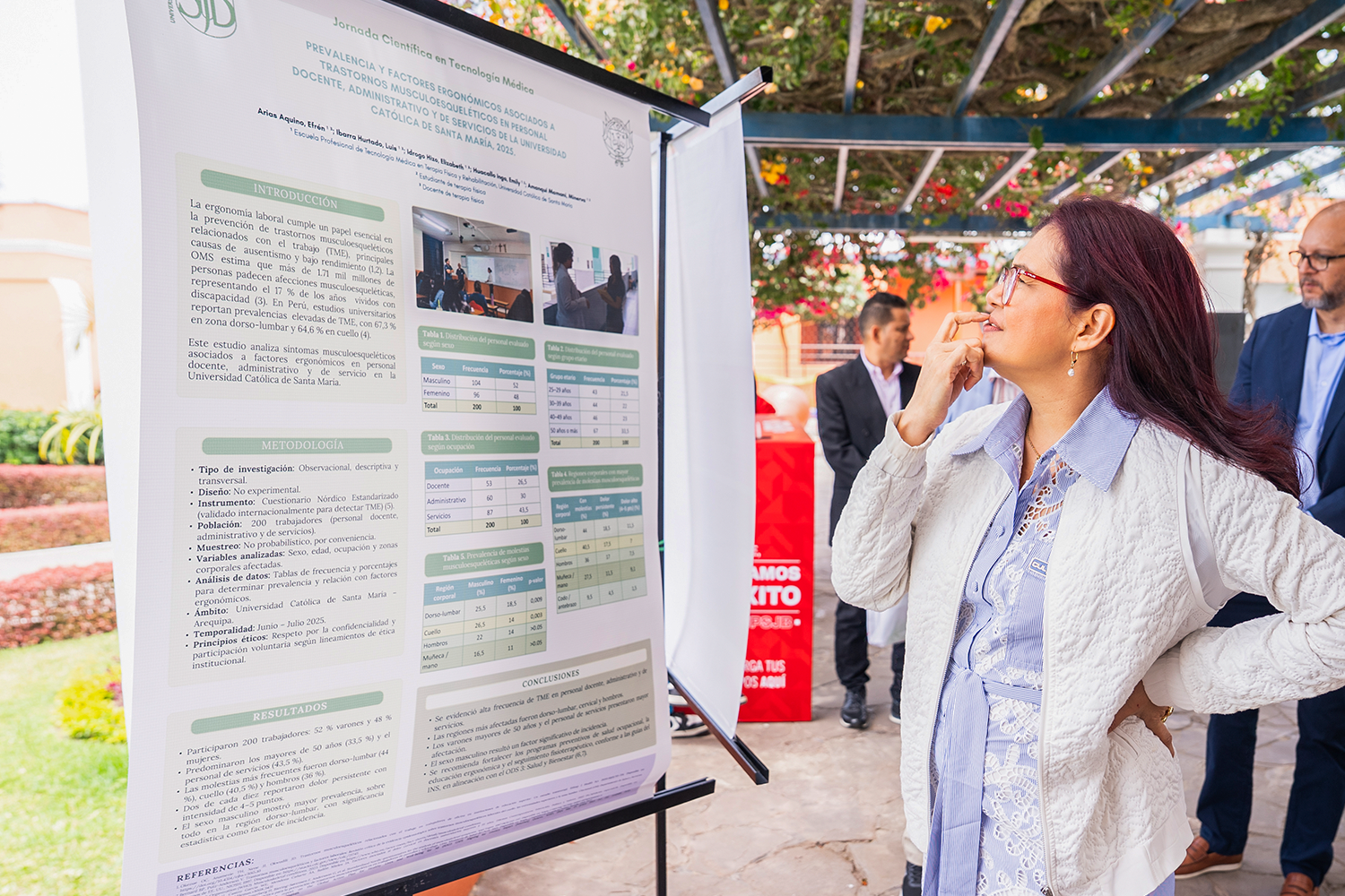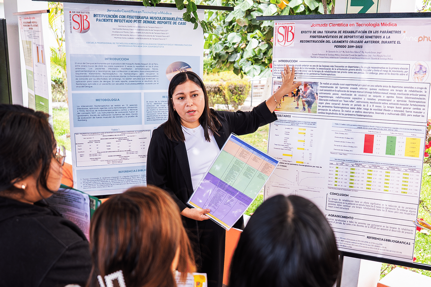 Asimismo, se presentaron investigaciones de universidades peruanas, como la Universidad Católica de Santa María (Arequipa). También se exhibieron trabajos de estudiantes de la UPSJB en Lima, Ica y Chincha, quienes demostraron rigor académico y liderazgo en investigación.