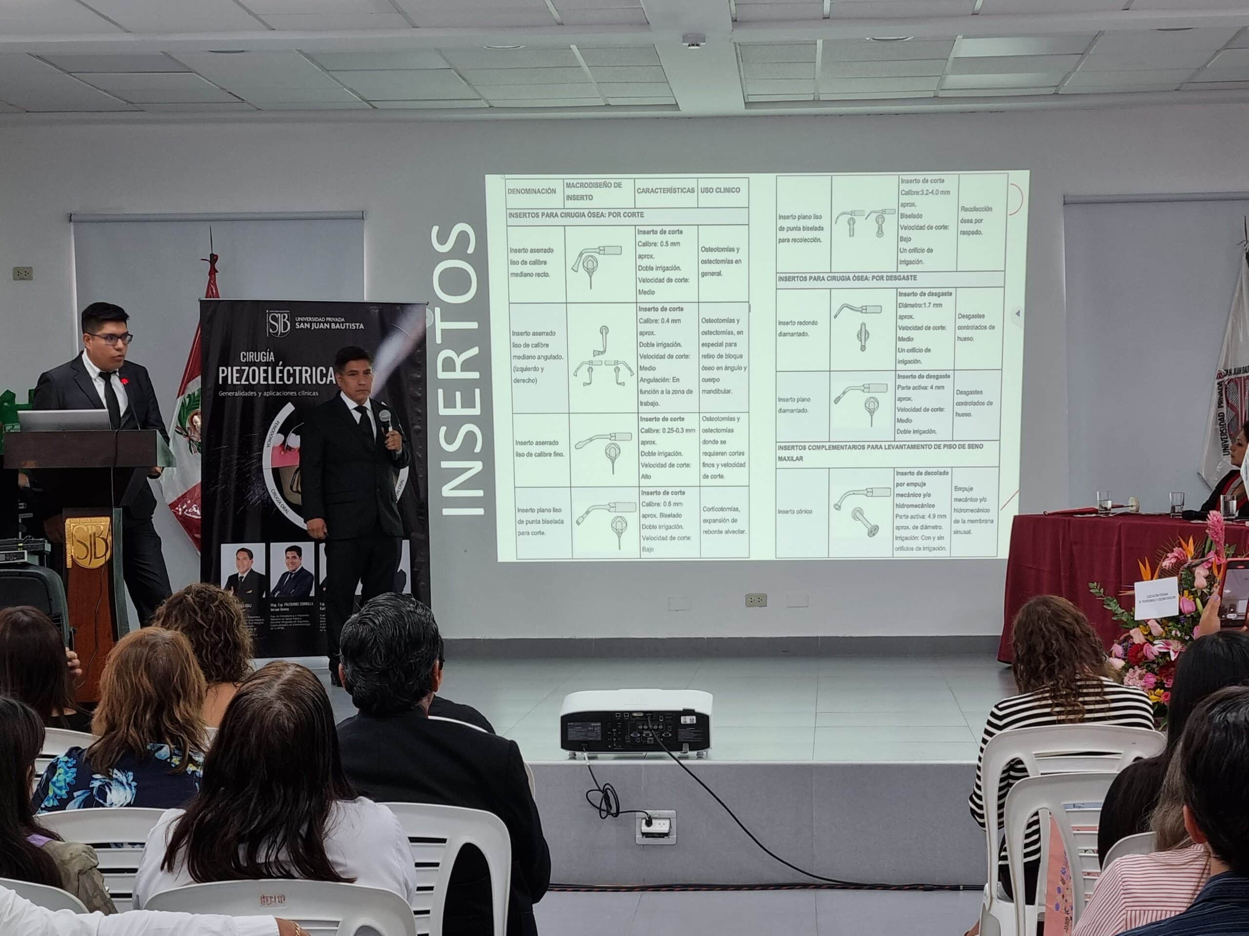 La Universidad Privada San Juan Bautista se enorgullece en anunciar que la Escuela Profesional de Estomatología llevó a cabo la presentación oficial del libro «CIRUGÍA PIEZOELÉCTRICA: Generalidades y aplicaciones clínicas» el pasado 1 de diciembre. Este proyecto, que se gestó hace seis años, representa un valioso aporte a la literatura académica internacional en el ámbito de la odontología.