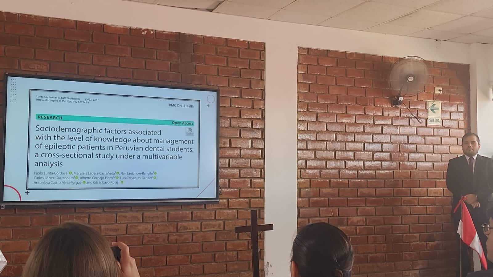 La Universidad Privada San Juan Bautista se complace en anunciar el destacado logro académico de Paolo Lurita Córdova, egresado de la carrera profesional de Estomatología, quien ha obtenido el título de Cirujano Dentista tras sustentar con éxito su trabajo de investigación, publicado en una destacada revista científica “BMC Oral Health” bajo el título: «Sociodemographic factors associated with the level of knowledge about management of epileptic patients in Peruvian dental students: a cross-sectional study under a multivariable analysis».