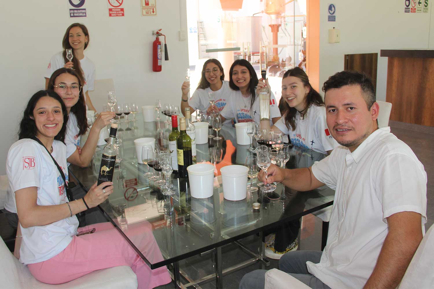 Las pasantes también participaron en clases de análisis sensorial, donde aprendieron sobre la valoración de vinos y piscos. Además, tuvieron la oportunidad de interactuar con los estudiantes y docentes de la carrera de Ingeniería en Enología y Viticultura, generando un intercambio de experiencias que enriquece tanto a los visitantes como a nuestra comunidad universitaria.