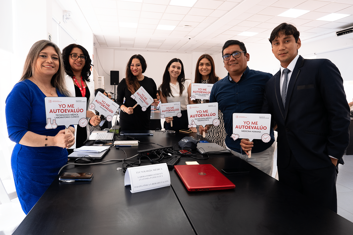 La jornada reunió a importantes autoridades, entre ellas el Dr. Alfredo Mendieta Leyva, rector (e); la Dra. Leny Bravo Luna, decana de la Facultad de Ciencias de la Salud; y el Ing. Jhon Tarazona Ponte, director de Acreditación de la Dirección General de Gestión de Calidad, Evaluación, Acreditación y Licenciamiento. También participaron directores de escuelas, coordinadores académicos, docentes, estudiantes y miembros de los Comités de Calidad.