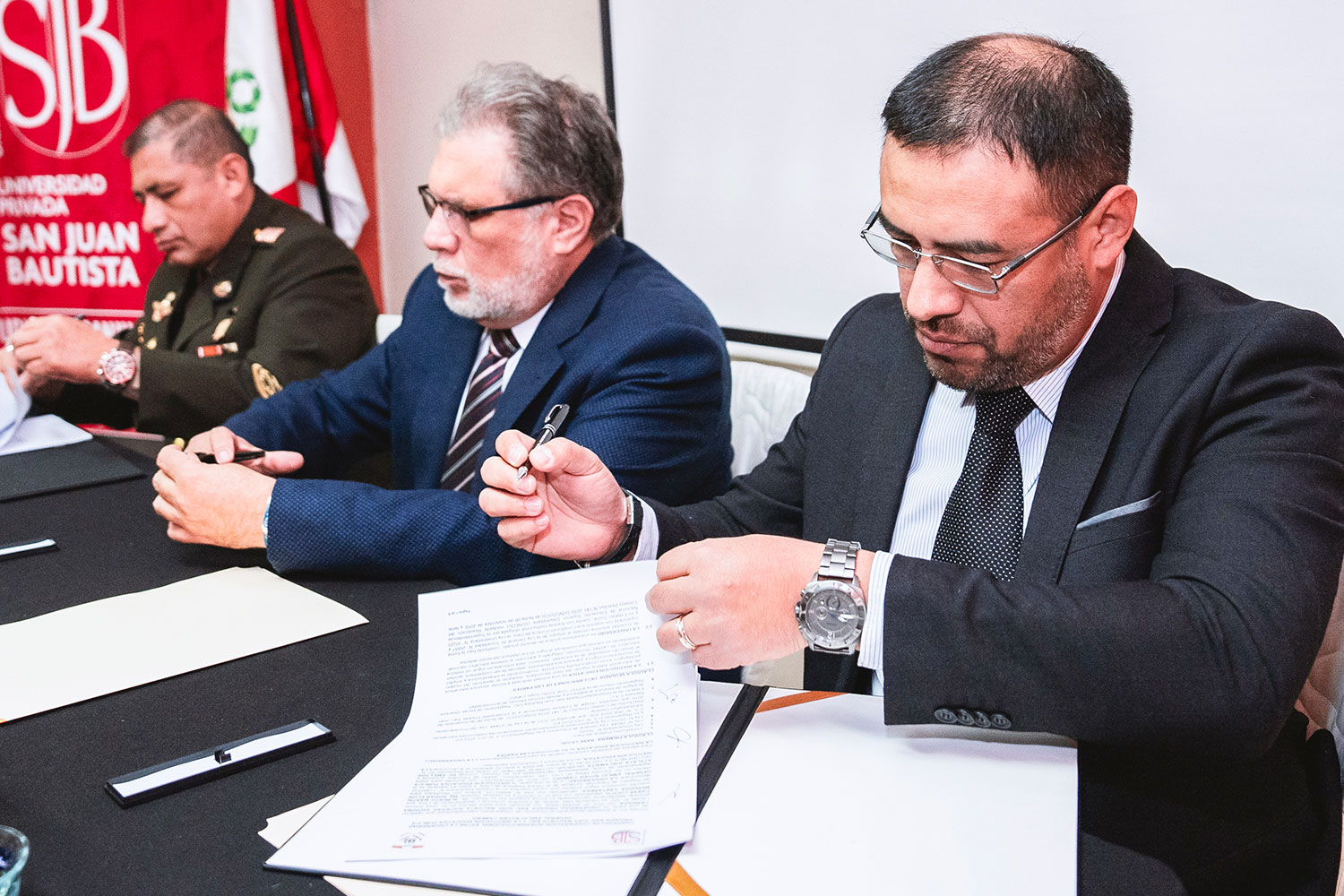 A su turno, el Coronel EP Amillton Atalaya, resaltó la importancia de establecer relaciones con instituciones académicas prestigiosas como la Universidad Privada San Juan Bautista. destacó que una de las políticas del comando del Ejército es fomentar estas alianzas claves para el desarrollo profesional de sus alumnos y egresados.