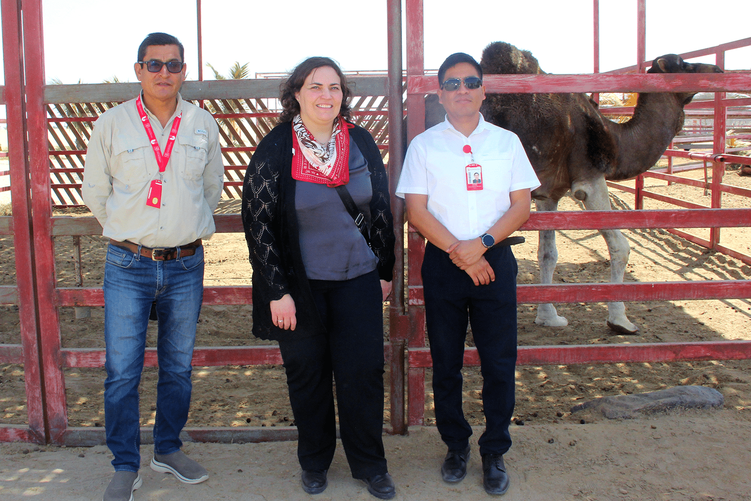 La Esp. Vet. Paula Gerlo visitó el Centro de Investigación Dromedarius. Elogió el trabajo de adaptación de camellos al clima iqueño. La UPSJB muestra liderazgo en investigación veterinaria aplicada. Nuestros proyectos tienen reconocimiento internacional.