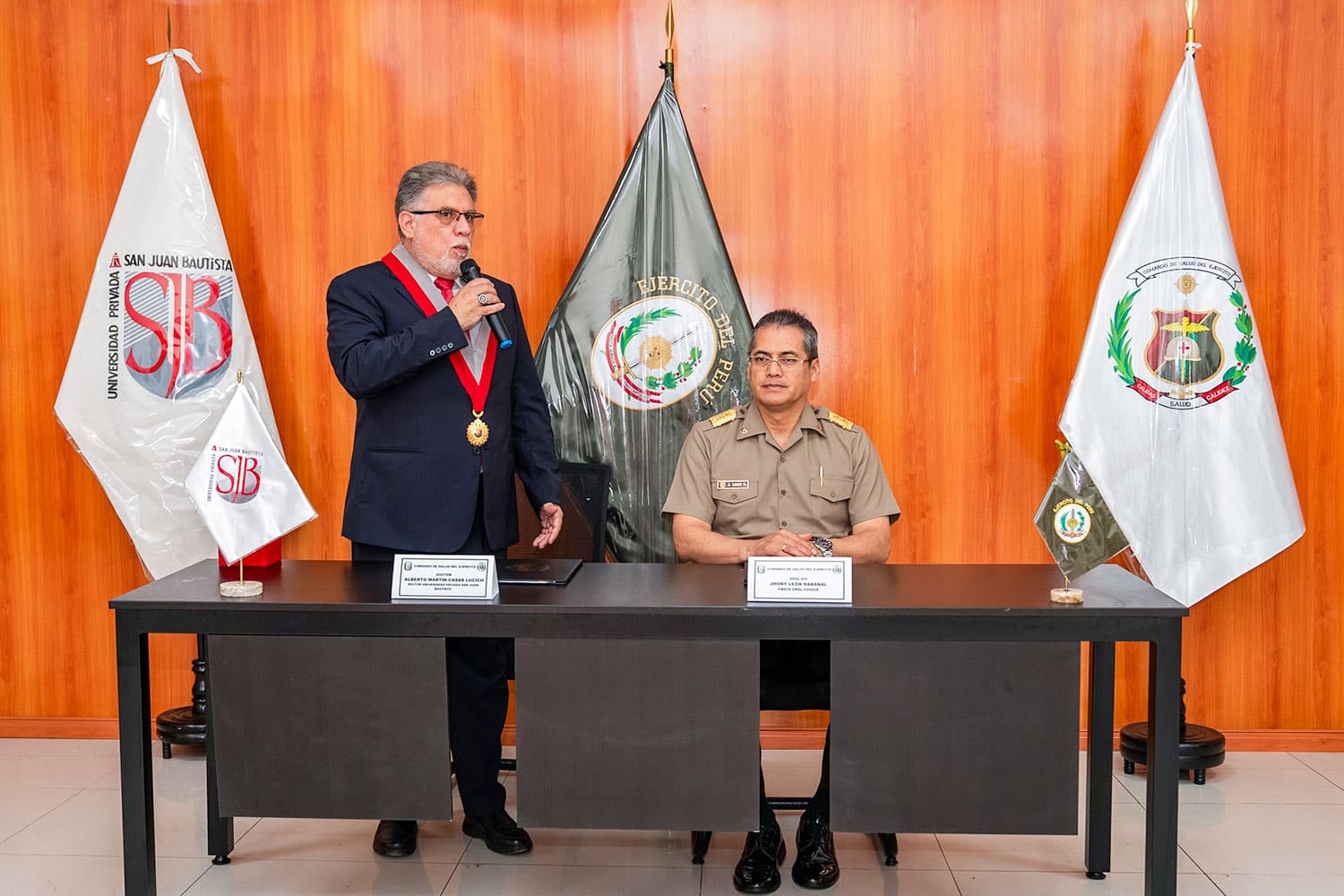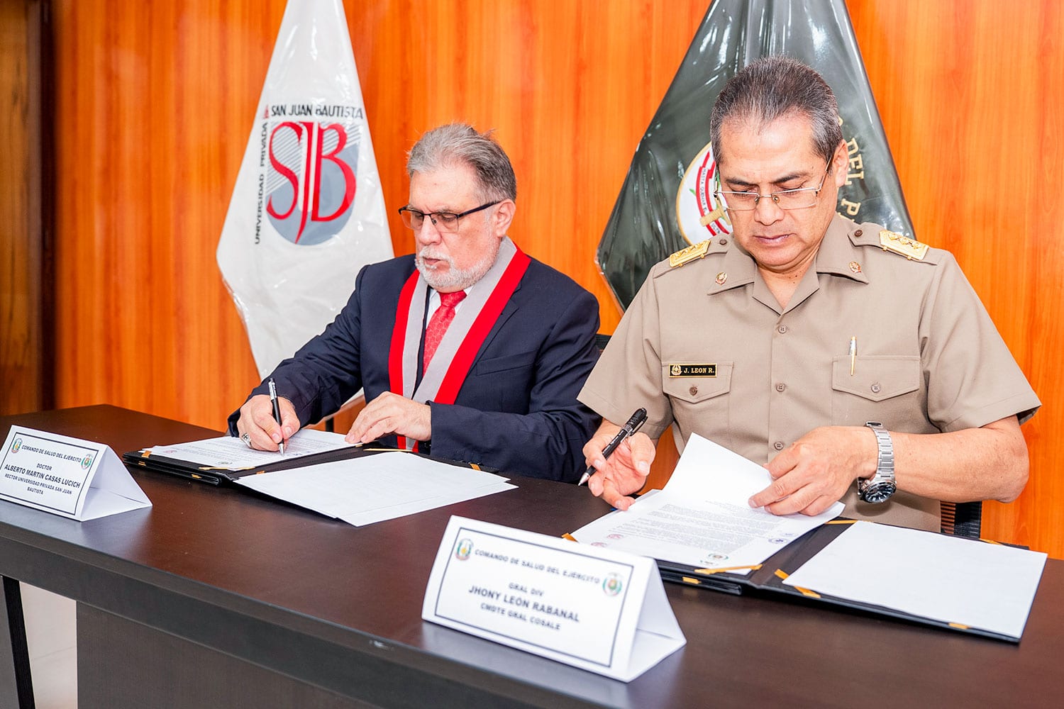 La Universidad Privada San Juan Bautista (UPSJB) firmó un convenio de cooperación docente asistencial, investigación científica y bienestar con el Comando de Salud del Ejército del Perú (COSALE). Este acuerdo beneficiará a estudiantes de Medicina Humana, Enfermería, Estomatología, Tecnología Médica y Psicología.