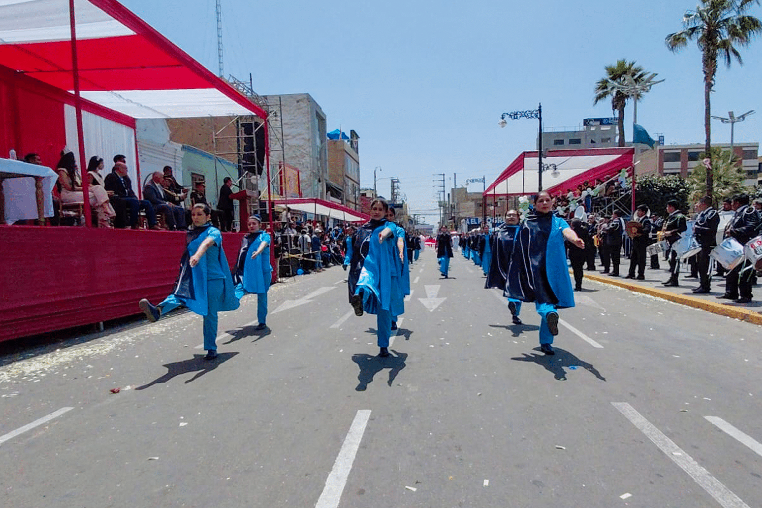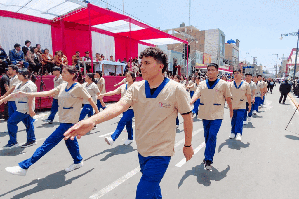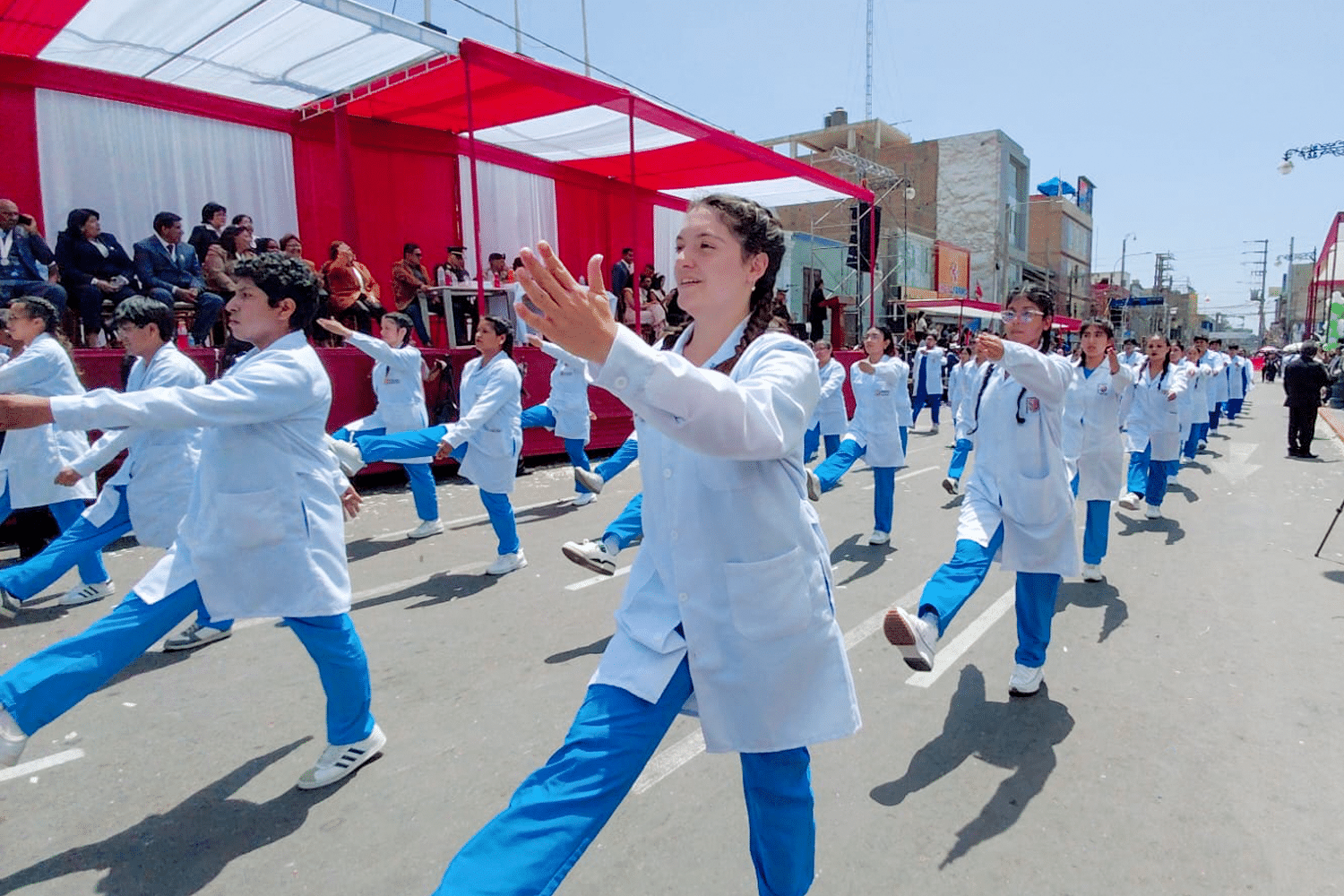 El desfile fue una de las actividades centrales del aniversario de Chincha, donde participaron delegaciones de institutos, universidades e instituciones públicas y privadas, destacando la presencia activa de la comunidad universitaria sanjuanina.