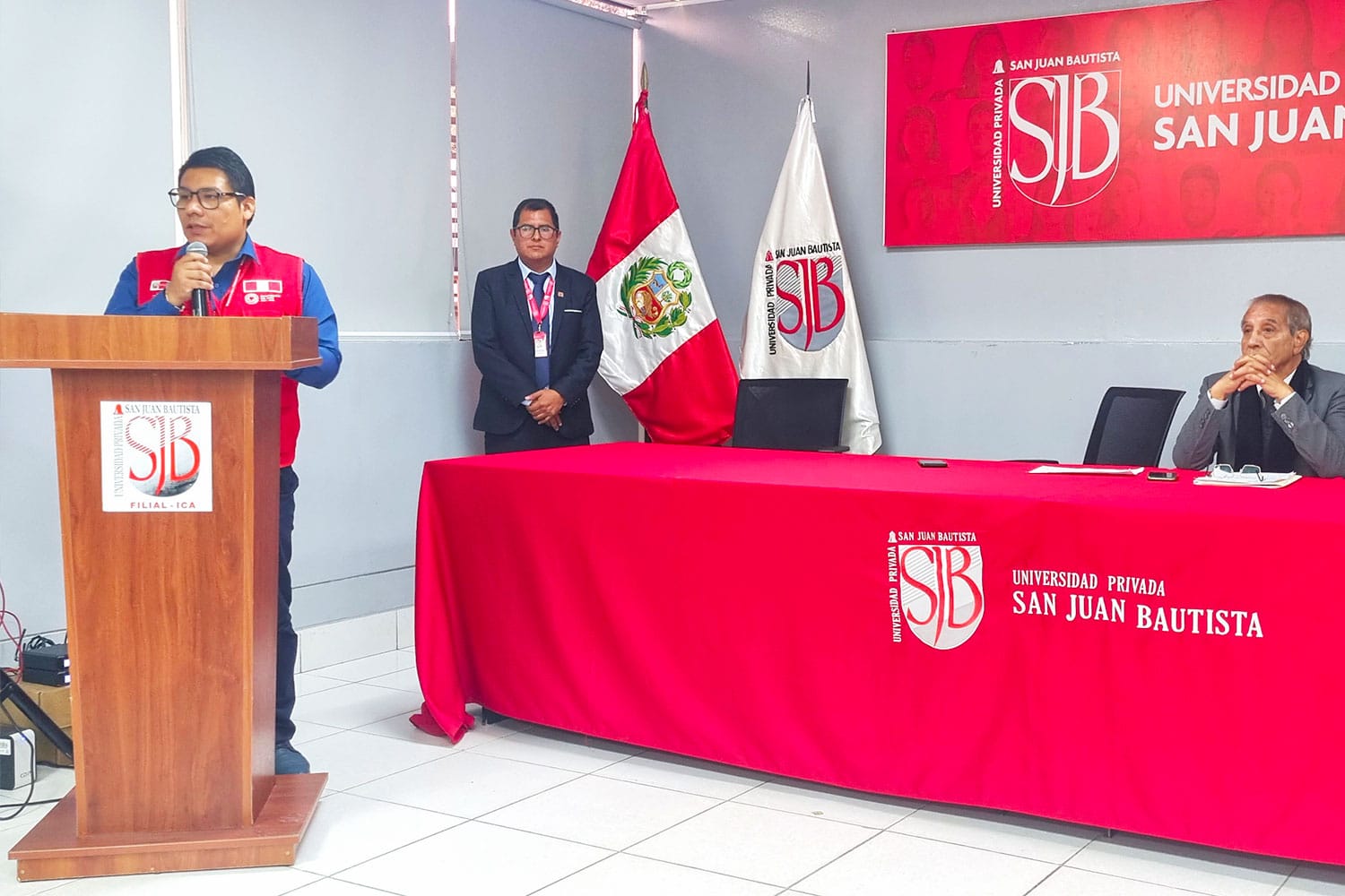 Una ceremonia especial marcó el inicio de las actividades. El evento contó con la presencia del Rector (e), Dr. Alfredo Mendieta. También asistió el Defensor Universitario, Abog. Luis Alberto Loayza Ávalos. Su participación evidenció el total apoyo institucional de la UPSJB.
