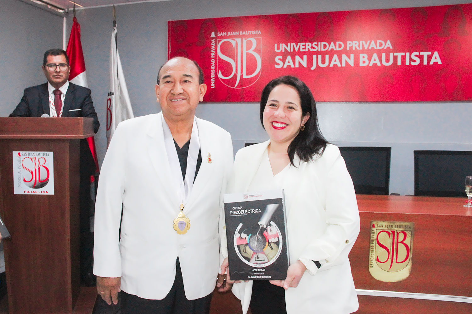 La Universidad Privada San Juan Bautista – Filial Ica, celebró con éxito la presentación del libro «Cirugía Piezoeléctrica: Generalidades y aplicaciones clínicas». Este evento, que reunió a destacados profesionales de la odontología, docentes, estudiantes y autoridades, marca un hito en la historia de la institución y posiciona a la UPSJB como un referente en la formación de profesionales de la salud bucal.
